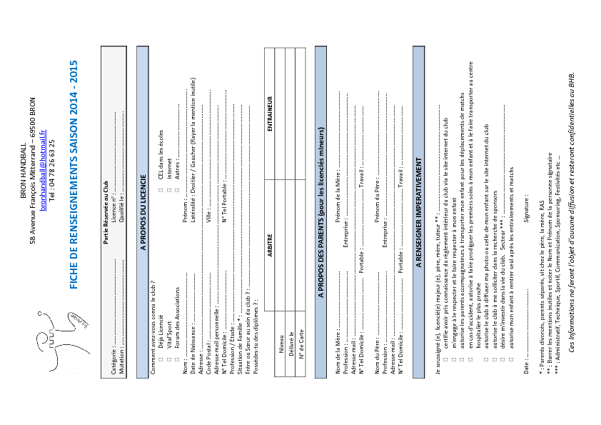 Fiche de Renseignements 2014-2015
